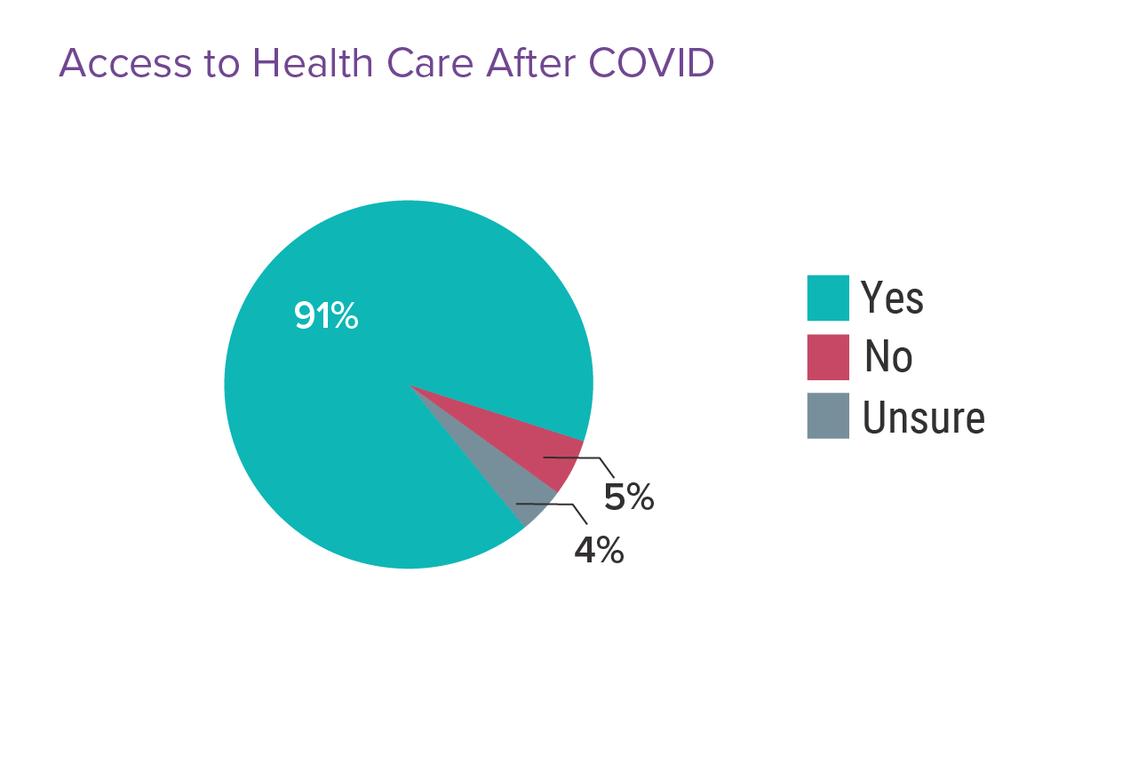 One survey respondent noted, “Access to healthcare is a perennial problem globally irrespective of the added burden of COVID-19.” Another respondent went so far to say, “Healthcare access has been severely compromised through the non-evidence-based policies driven by public health authorities and the government.”