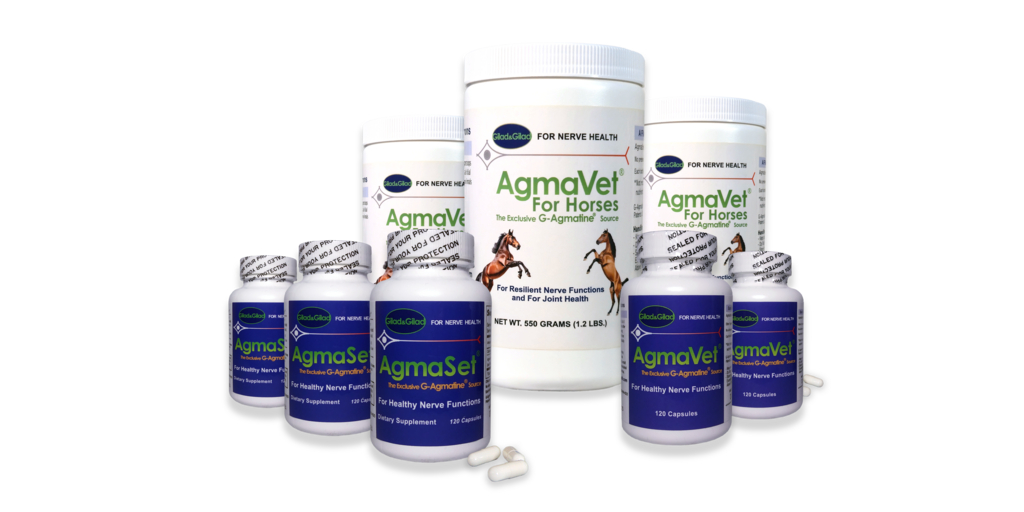 AgmaVet® For Horses together with AgmaVet® (for small animals) and AgmaSet® belong to the Agmaceuticals® line of patent protected products containing the neuroprotective ingredient G-Agmatine®. These category-leading products are superior to existing therapies for sustaining resilient nerve functions and proper joints mobility.