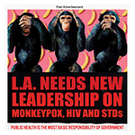 The ad, headlined “L.A. Needs New Leadership on Monkeypox, HIV and STDs”, criticizes L.A. County officials over their “top-down approach, which dictates to the community rather than enlisting their support, and sets community groups against one another.” The ad reminds readers that public health is the most basic responsibility of government yet points out that the “LA County Department of Public Health treats the trusted representatives of the community with contempt.”